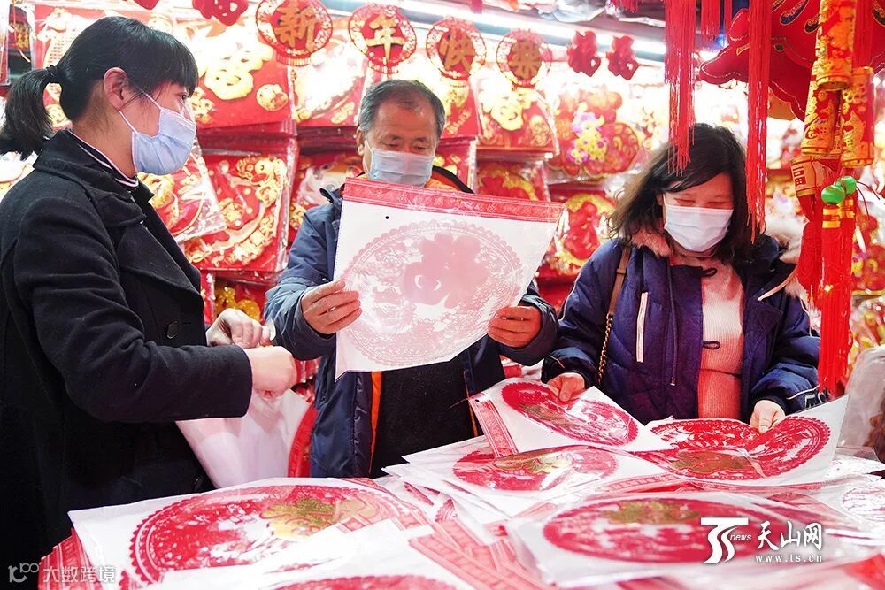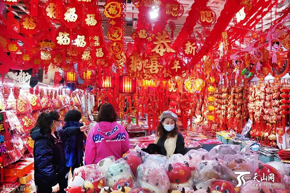 1月14日,乌鲁木齐市,市民在一家超市内挑选节日饰品。郭鑫格摄