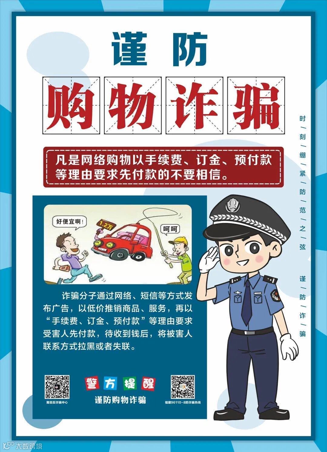 防骗提示:凡是网络购物以手续费、订金、预付款等理由要求先付款的,都不要相信
