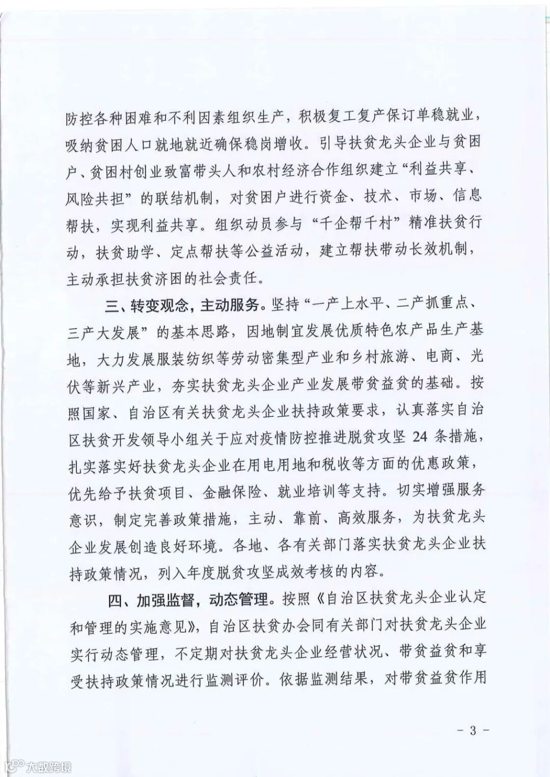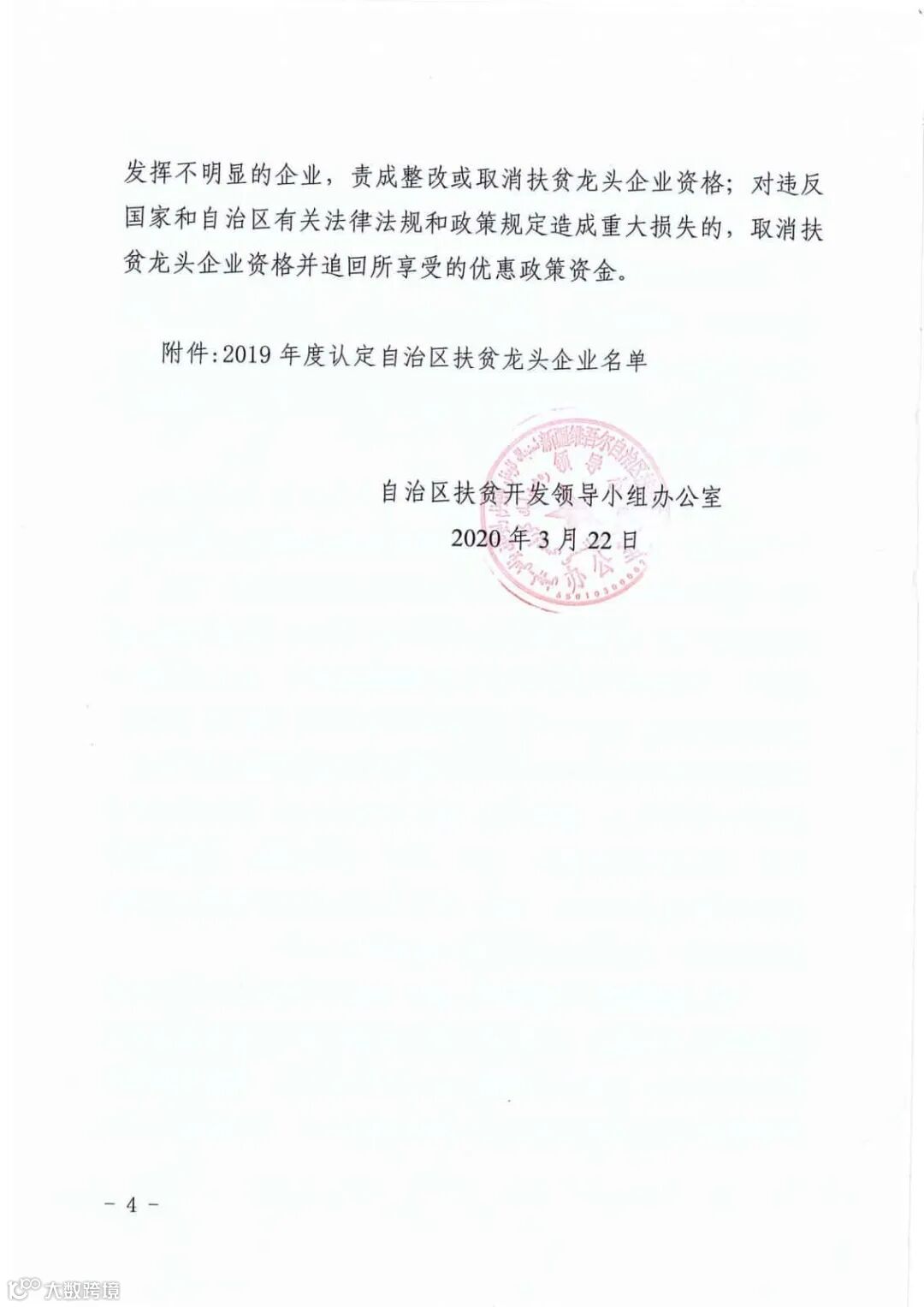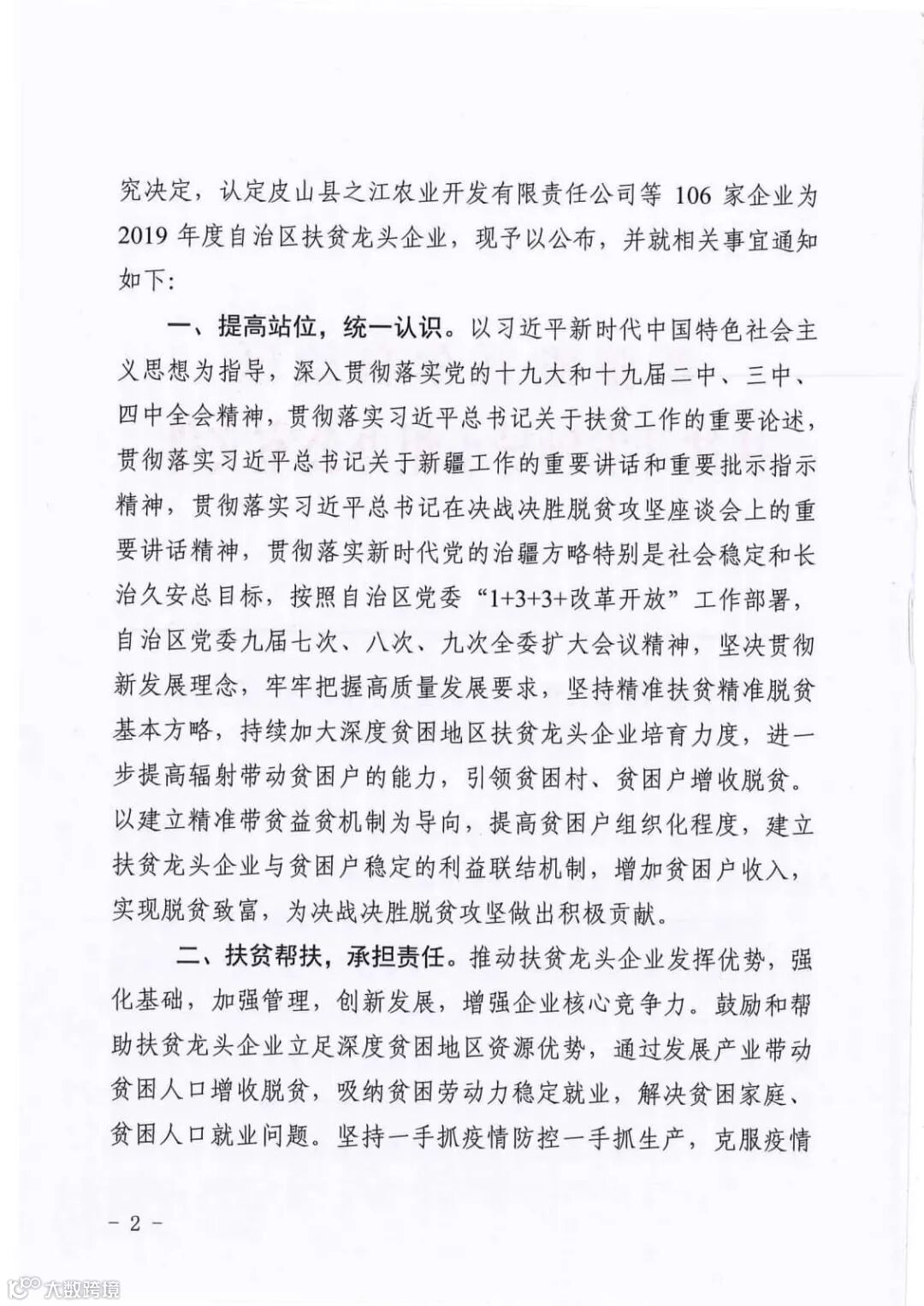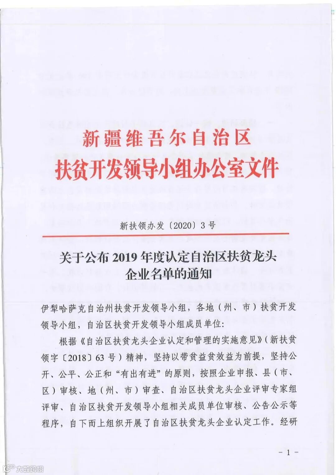 导读:3月22日,新疆维吾尔自治区扶贫开发领导小组办公室下发《关于公布关于公布2019年度认定自治区扶贫龙头企业名
