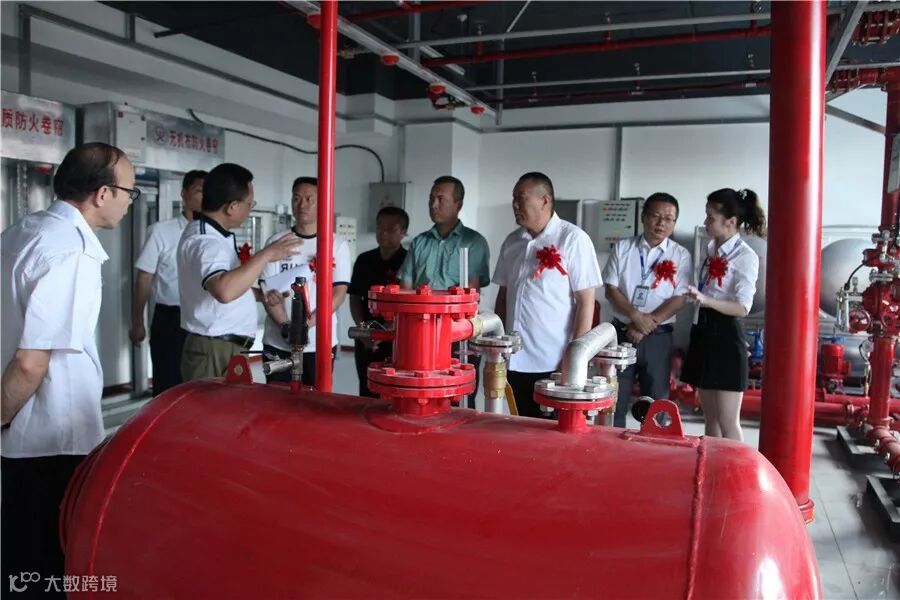 远方企业集团有限公司代表马依努尔·吐尔逊、陈钢(图右一、右二)参观消防实操设备