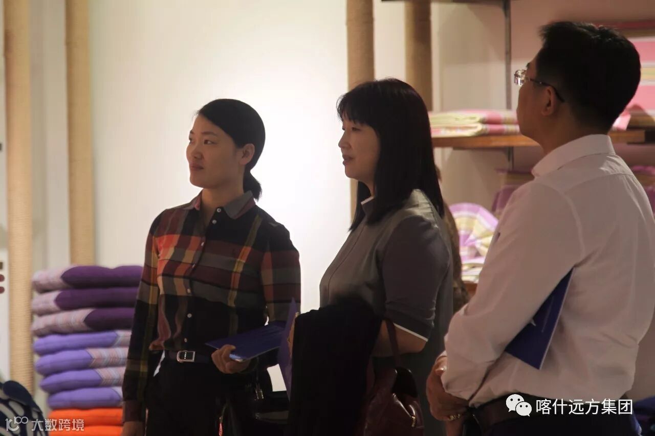 李明董事长、周默董事长一行来到园区沙盘前,听取了喀什远方国际物流港有限责任公司副总经理陈钢对园区项目建设运营情况和发展规划的介绍。随后,李明董事长、周默董事长一行参观考察了远方电商产业园线下馆,并重点了解了三晋源土布馆的生产、销售情况。李明董事长和周默董事长均表示,园区配套设施完善,运营管理良好,随着国家“一带一路”战略各项政策的落地,将会有更加良好的发展前景。