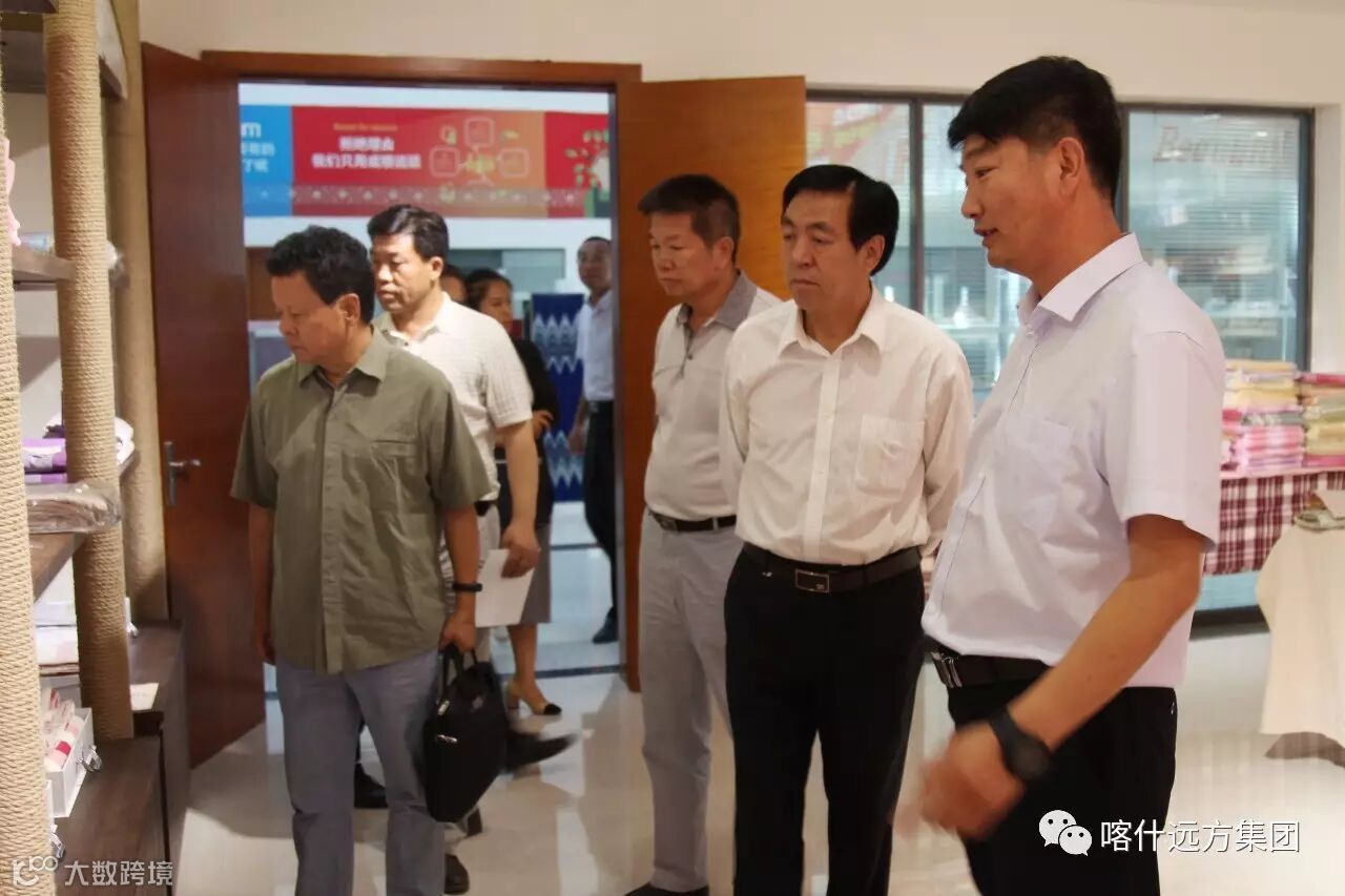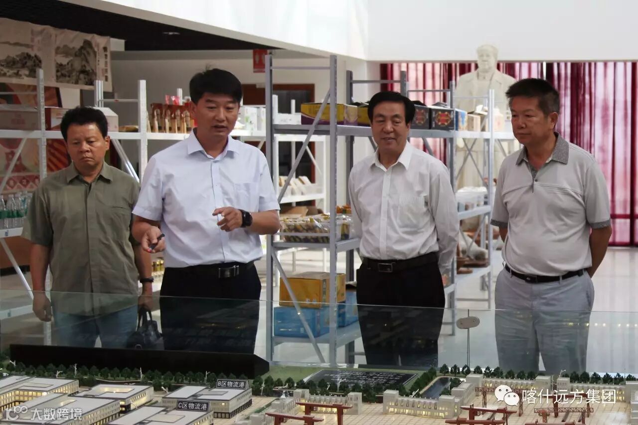 2017年7月31日,新疆维吾尔自治区人民政府参事、原自治区旅游局党组书记池重庆、原自治区商务厅党组成员杨开新一行莅临远方国际物流产业园参观考察,远方企业集团副总裁吴元虎、喀什远方国际物流港有限责任公司副总经理陈钢陪同参观考察。