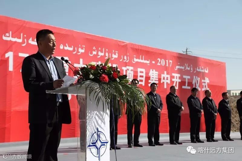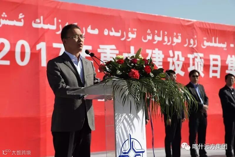 仪式上,地委委员、行署常务副专员陈志江介绍了地区集中开工重大建设项目情况,他表示抓好重大项目建设,夯实发展基础,保障改善民生,推动产业升级,促进经济增长,拉长补齐短板,对于喀什地区实现社会稳定和长治久安的目标具有十分重要的现实意义。地委行署将在自治区党委、自治区人民政府的坚强领导下,在四省市的大力支持下,众志成城,万众一心,以“逢山开路,遇水架桥”的勇气和魄力,凝聚起强大的合力,全力做好项目建设各项工作。坚决做到安全生产、质量保证、高效推进,努力把每一个工程项目都打造成精品工程、安全工程、惠民工程、廉政工程,给全地区各族人民群众交一份满意的答卷。随后喀什市、疏勒县、喀什地区经信委以及中交集团喀什投资有限公司相关领导进行表态发言。