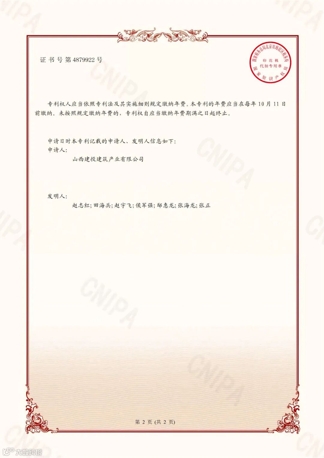 《拉片式、拉杆式多规格铝模板全自动生产线的研究与应用》获得了中施企协第二届工程建造微创新技术大赛一等奖。