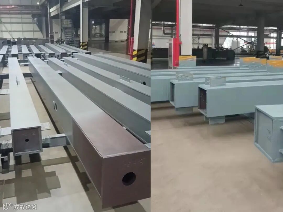 构件本体断面为字和#字等型状,其型材板厚度在6-30mm,箱形截面在200-1000mm之间,长度小于等于12000mm以内均可加工制作,适用于装配式钢结构工业平台、写字楼,装配式高层住宅等重要建筑。
