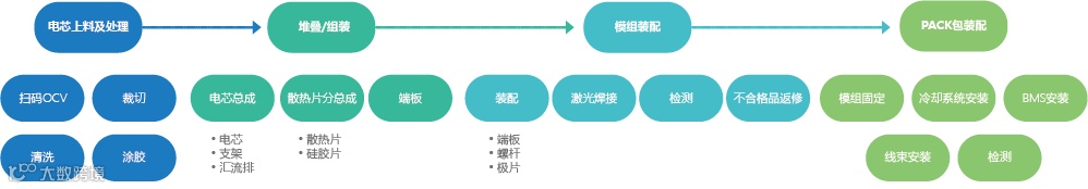 PACK是根据整车厂的要求,对不同车型进行针对性研发,具有较强的定制化属性,当前市场上各家汽车厂商的要求不同,几乎没有两家车企的模组和生产工艺是一样的,这也对自动化产线提出了更多的要求。