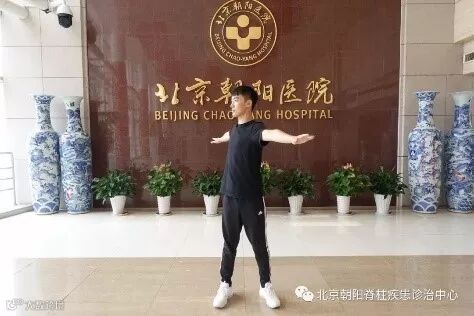 两脚开立与肩同宽,扭转躯干,向左/右侧做转体运动完成一次体转后,两臂轻置体侧,再重复上述动作(注意:不要做另一方向的体转动作)。在动作过程中强调双腿伸直,不要移动双脚。每次动作持续5秒,每组重复20-30次,共练习5组。