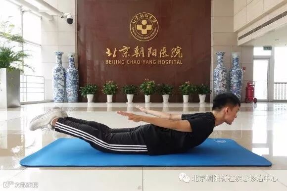 在硬床上或干净的硬质地板上,取俯卧位,双臂向后在背部十指交叉,同时轻轻抬头。与此同时,双脚轻轻抬起,腰底部肌肉收缩,尽量让肋骨和腹部支撑身体。每次动作保持10秒,然后放松肌肉,四肢和头部回归原位休息10秒再做。每组10-20次,共练习10组。