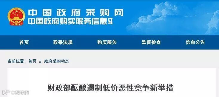 近日,中国政府采购网发布最新通告《财政部酝酿遏制低价恶性竞争新举措》。