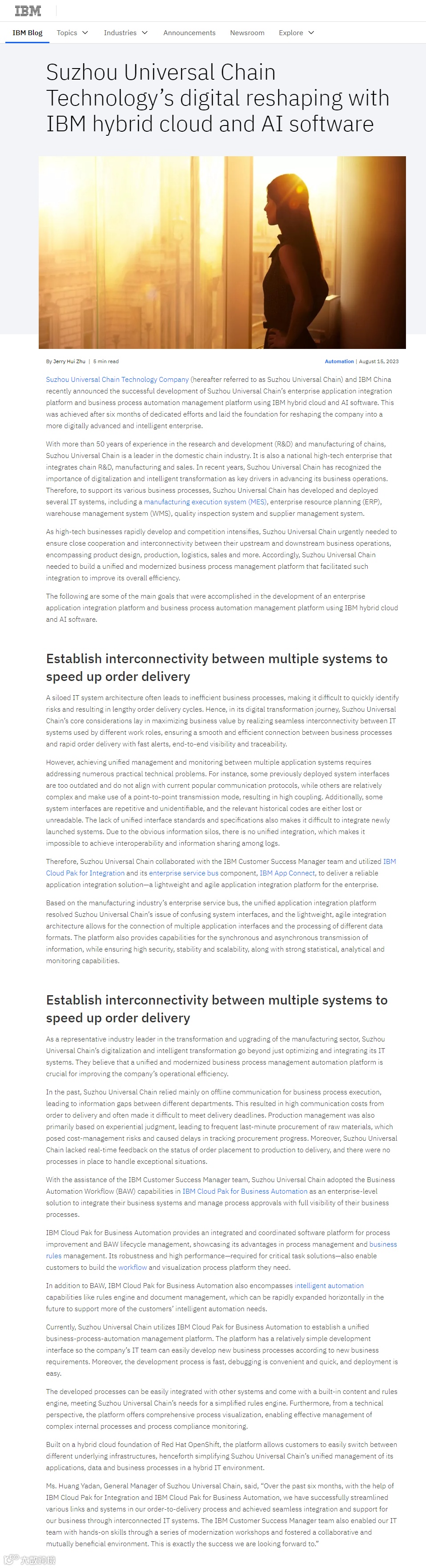 8月15日,新豪轴承母公司环球传动与IBM的合作项目被IBM全球总部官方报道。