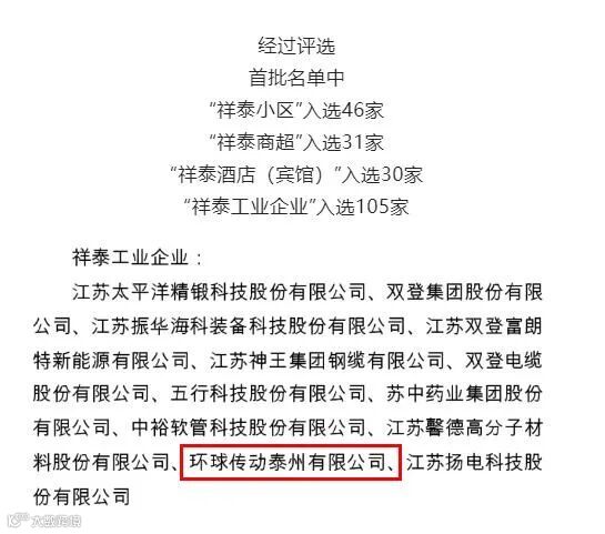 此次活动,环球科技认识到了所考核的这八个方面的重要性,未来也将会以获得“祥泰工业企业”的荣誉激励自己精益求精,与泰州市获此殊荣的各类企业携手并进,共建美丽泰州。