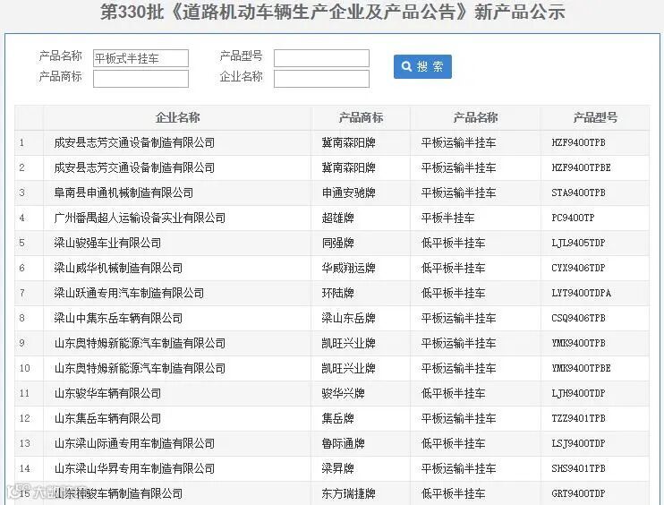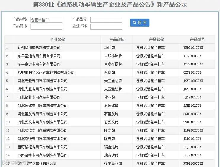 但是在最新公布的330批公告中,搜索“仓栅式半挂车”之后得出的结果数量非常庞大,可以说是扎堆出现,由此可见新政实施的大趋势是不可阻挡的。