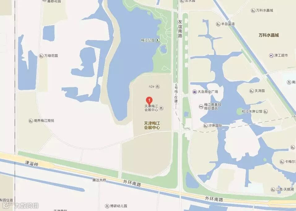 公交/地铁:步行至“天津西站”,乘坐“地铁1号线(双林方向)”,在“营口道站”下车,步行至“南京路站”,乘坐“838路”,在“梅江会展中心站”下车。