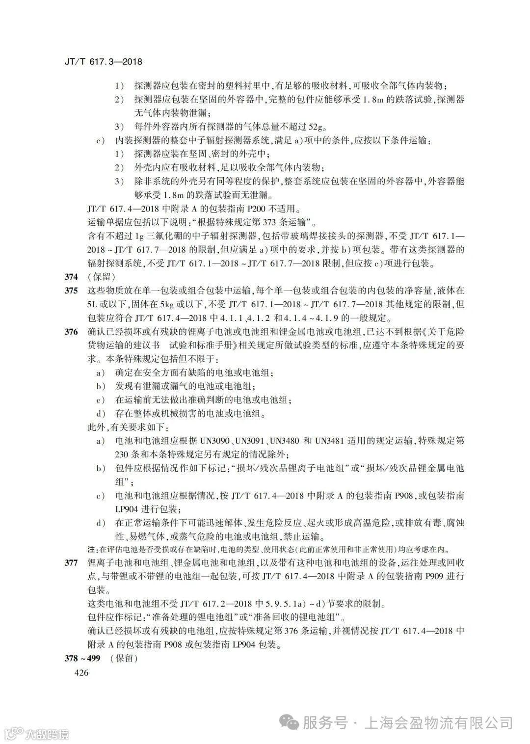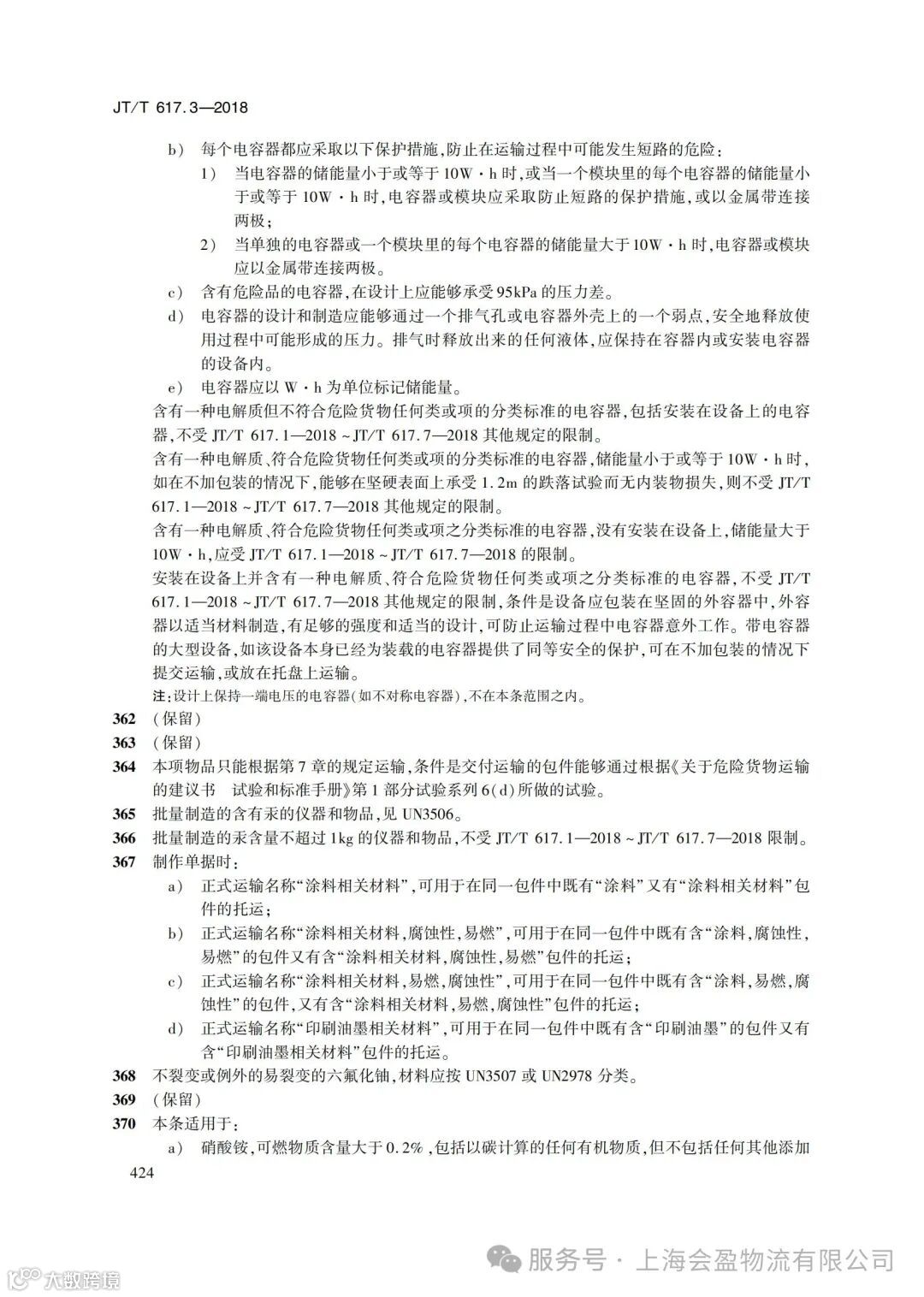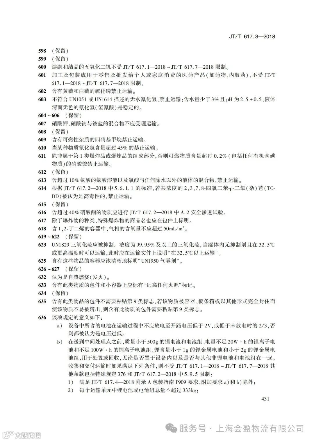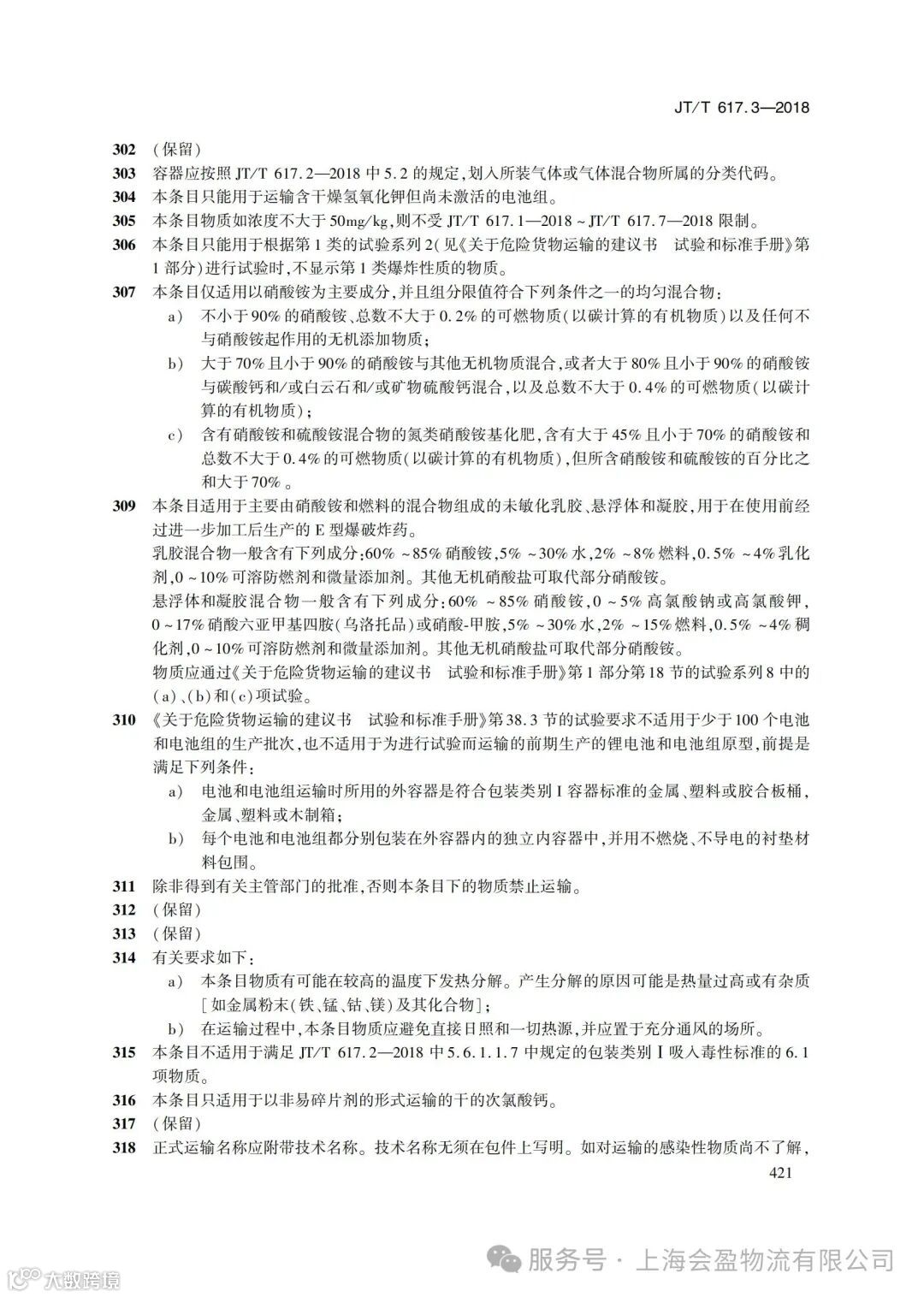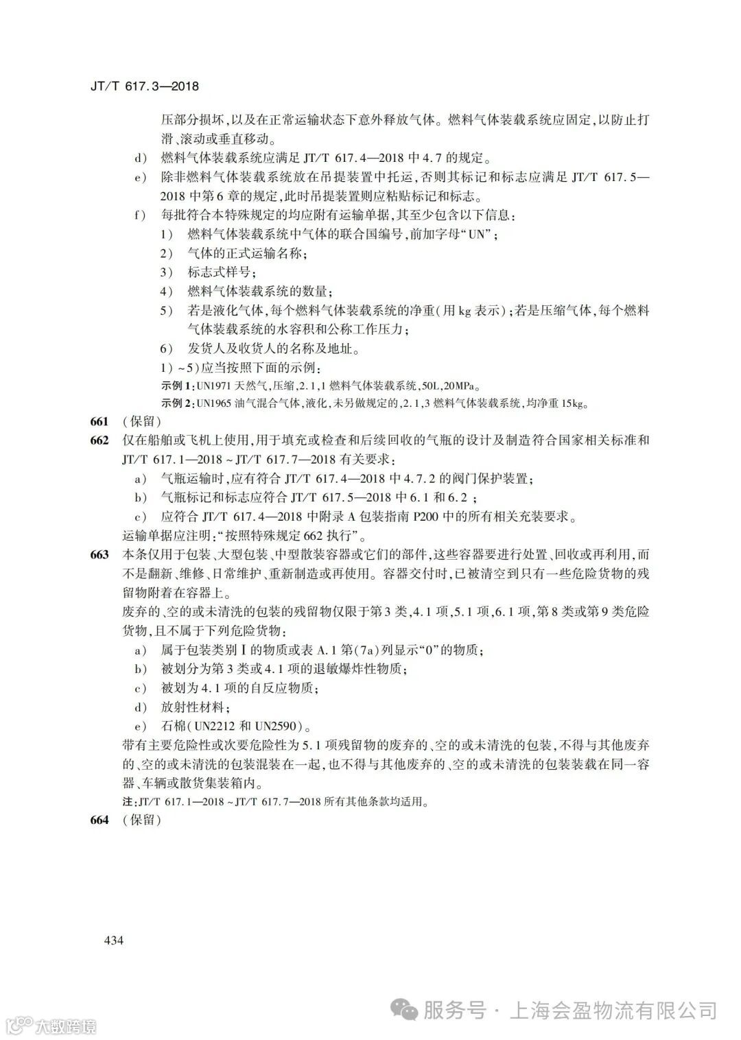 上海会盈物流有限公司JT/T 617 的本部分规定了道路运输危险货物品名的一般要求、道路危险货物运输要求索引、特殊规定,以及有限数量危险货物和例外数量危险货物的道路运输要求。本部分适用于危险货物道路运输。
