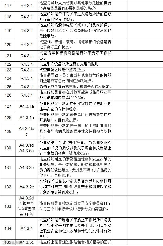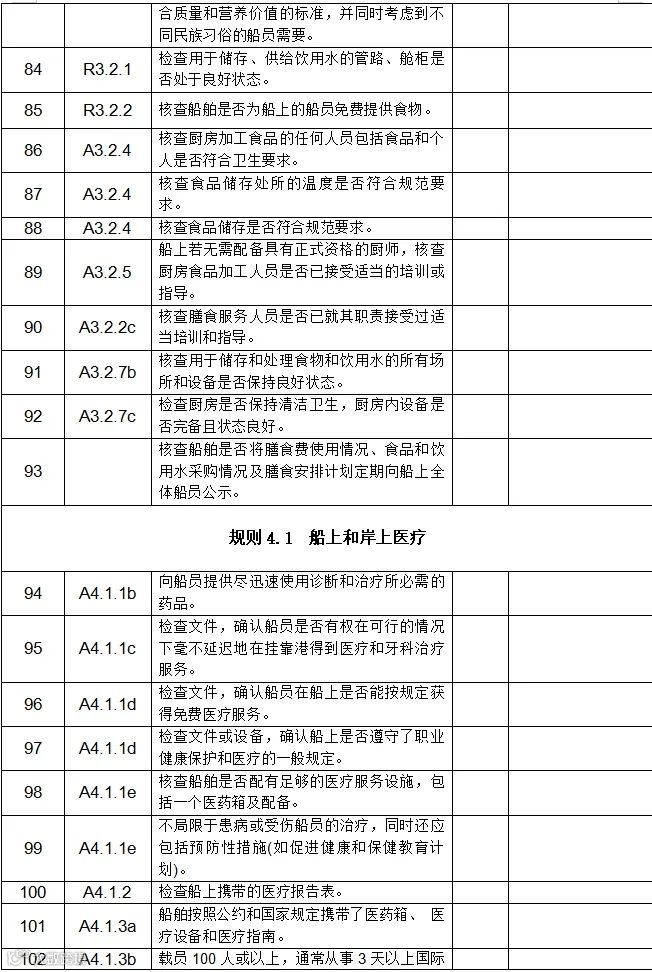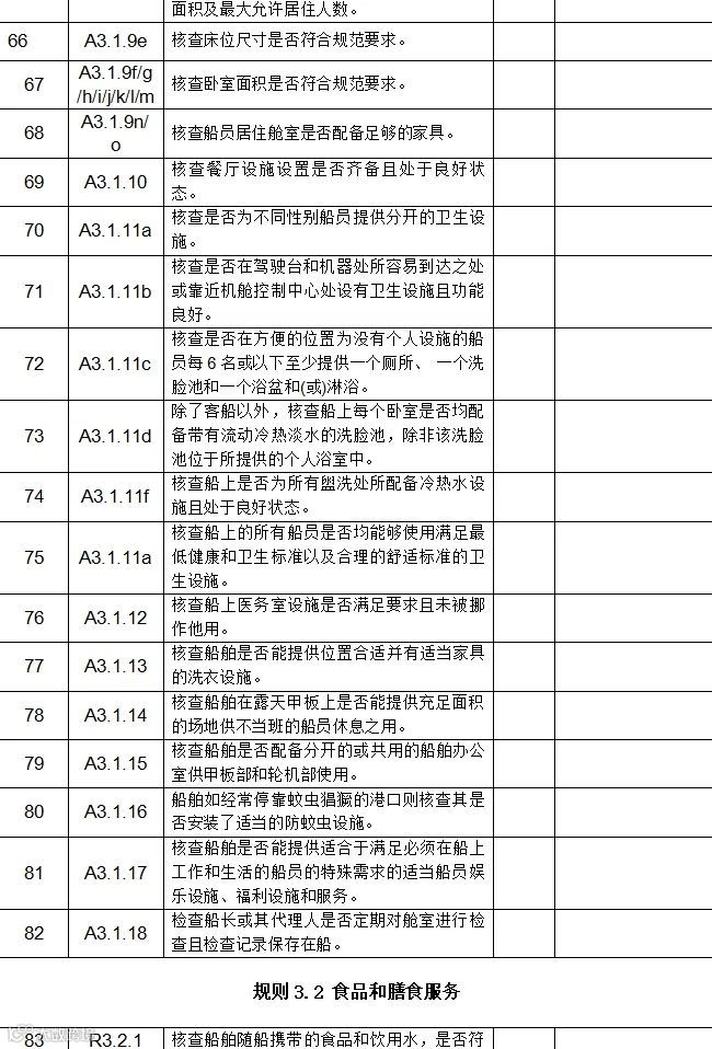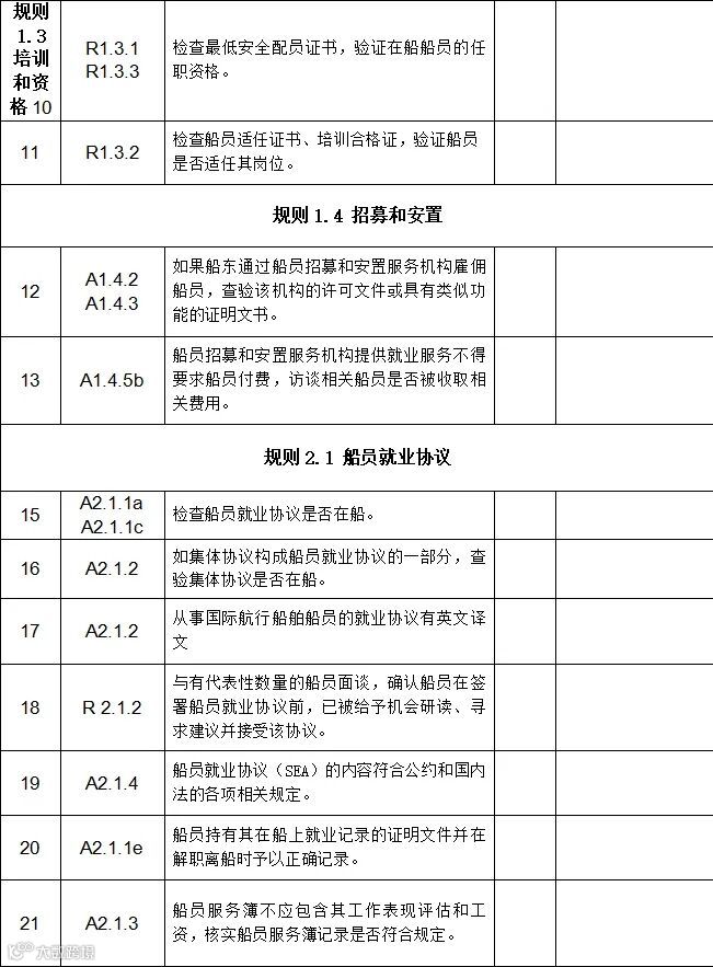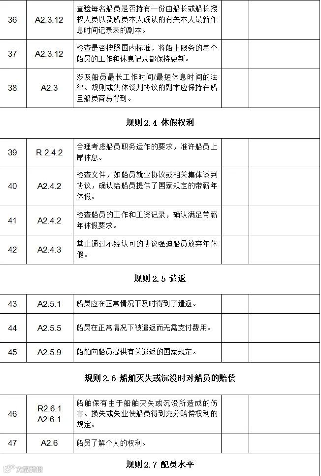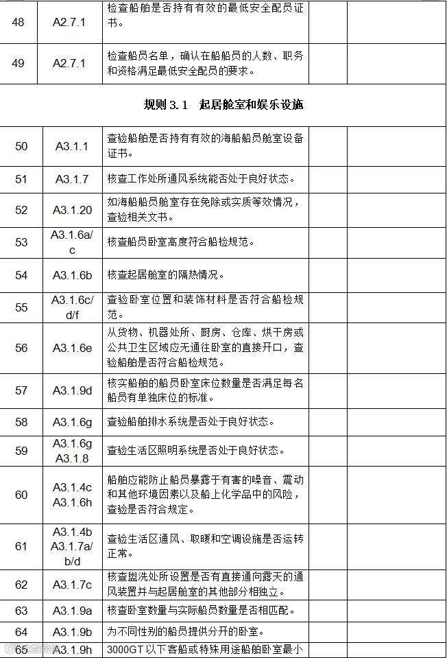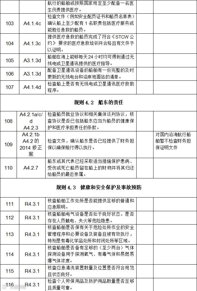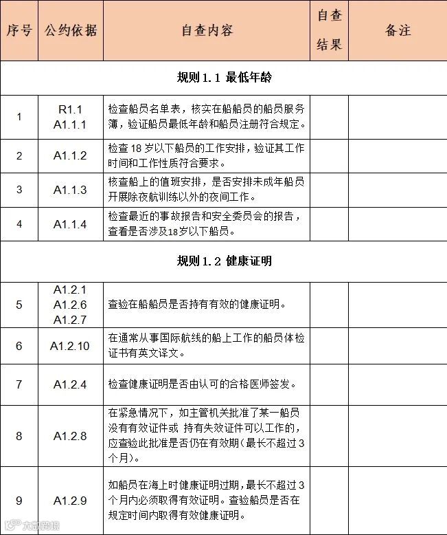 国内航行海船海事劳工条件自查表