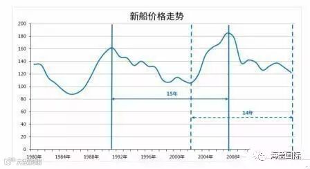 他评论称,根据过去36年的船舶价格指数趋势,经过大约15年的一个周期会出现一个急剧增长,这一增长通常持续5至6年;因此,投资造船和航运业务需要在5年内实现利润,并在接下来的20年内等待机遇。