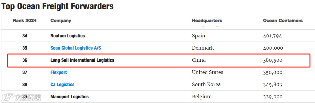 近日,备受瞩目的物流业权威杂志《Transport Topics》发布了最新一期的全球海运50强榜单。深圳市长帆国际物流股份有限公司凭借其卓越的海运量表现及坚实的综合实力,在国际海运领域脱颖而出,荣登全球排名第36位的宝座,再次彰显了其在全球航运市场的领先地位!