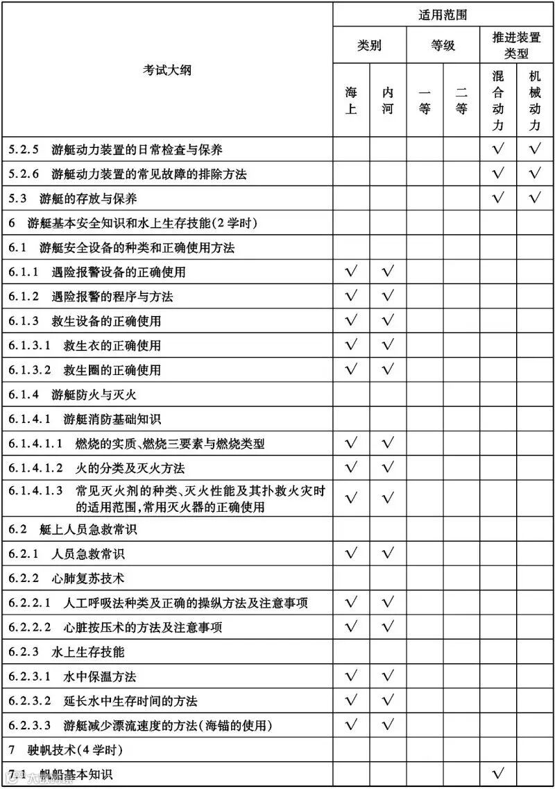 游艇操作人员理论培训与考试大纲