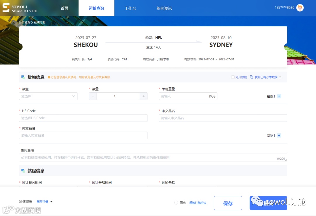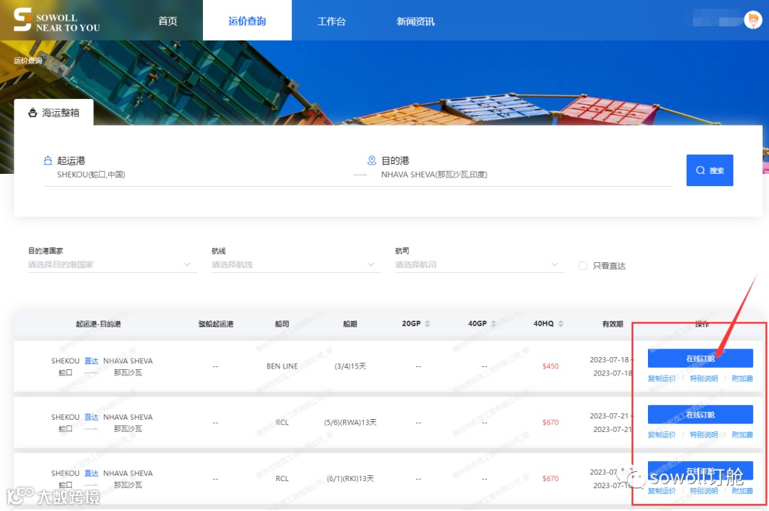 Sowoll一键解决业务乱报价、订舱爆舱等问题,让海运物流变得更透明,帮助客户及时掌握运价变动,不错过任何一条特惠运价。