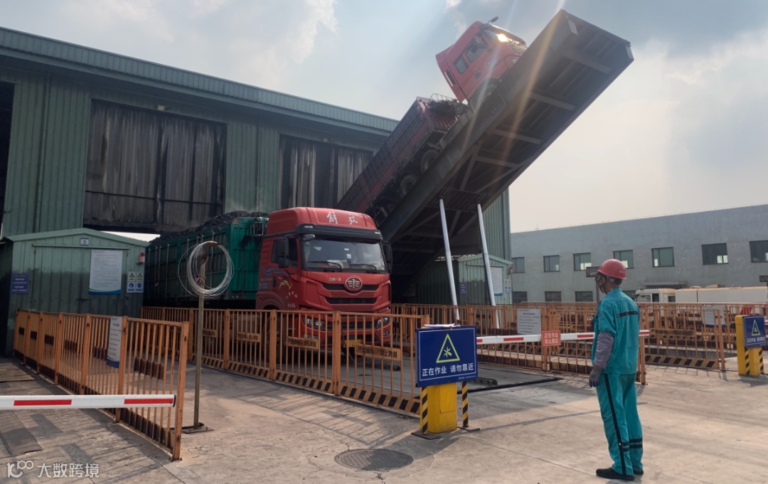 在日照区域公司“散改集”全自动工艺系统生产现场,操作员手持遥控器,8分钟内完成一台半挂车的卸车作业,大幅度减少司机的在港停时。