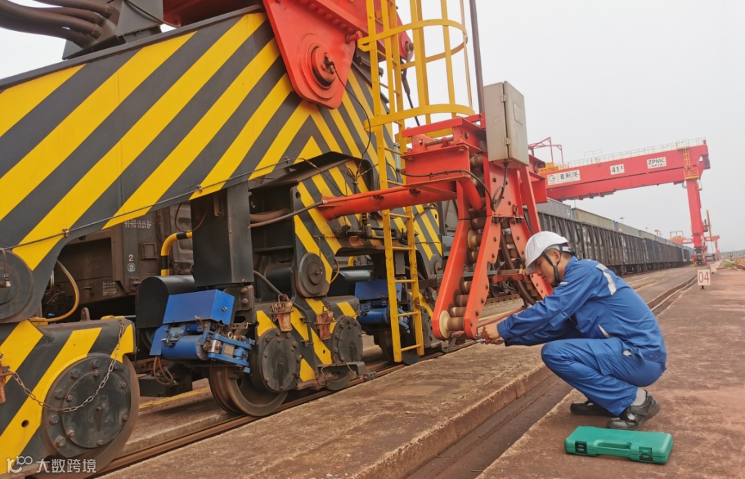 在日照区域公司场站操作中心,轨道吊司机高效做好海铁联运班列装卸工作,并利用停机时间,对轨道吊进行“把脉问诊”,保证其健康运行。