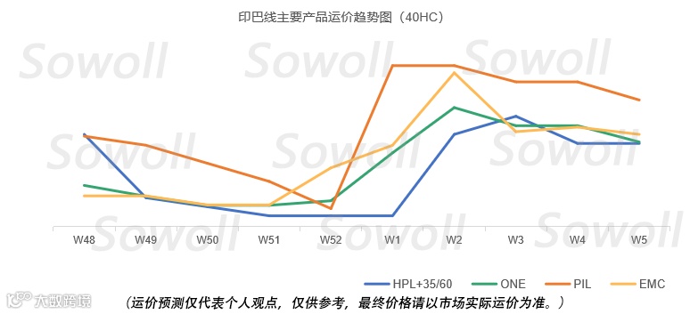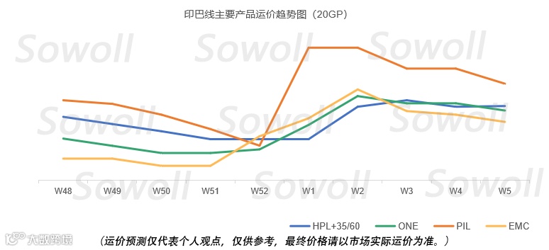 基于节前出货惯例, 印巴1月运价翻倍,但出口需求没有明显增长。节前、节中船期的价格有些许回落,但市场运力充足,柜子紧张问题同样明显。2月运价预计持续跌落,直至工厂复工,生产恢复。