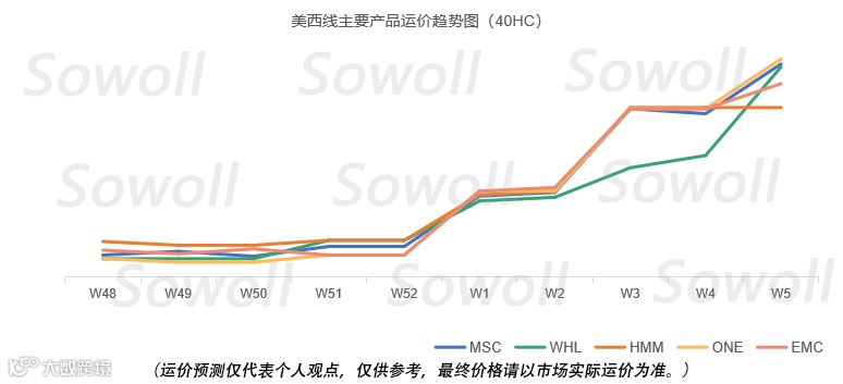 总而言之,因临近春节出货高峰期,全球航线都将在不同程度上推涨运价,加上红海停航问题持续发酵、巴拿马运河干旱问题悬而未决……运输成本增加进一步推动价格上涨,新年年初持续涨价是不可避免的。年前、开年有任何收货的货代朋友们,请提前做好准备!上Sowoll让你无后顾之忧!实时更新运价!