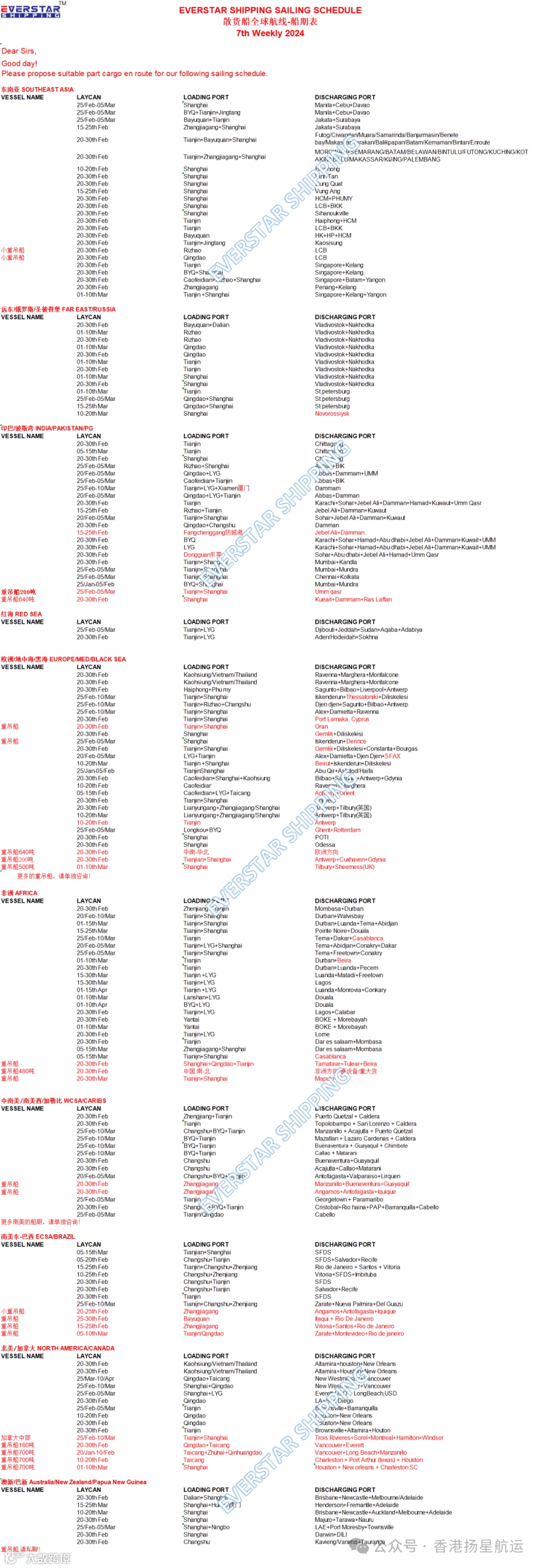 2024年2月大中华区散杂船期表(第7周) - SAILING SCHEDULE 香港扬星航运