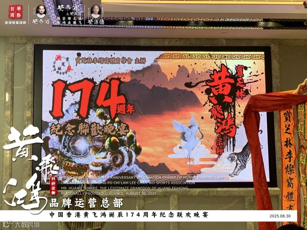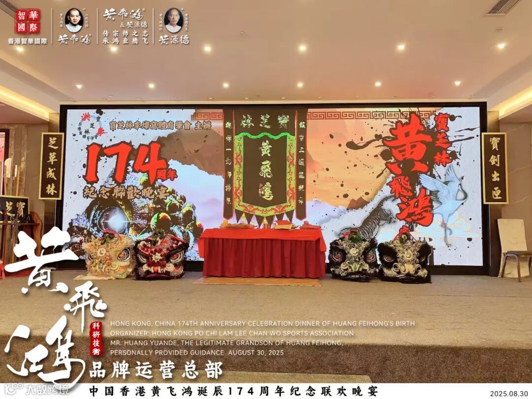 在时光的长河中,总有一些名字如璀璨星辰,永不磨灭。黄飞鸿,这位一代武术宗师,以其卓越的武艺、高尚的武德和传奇的人生经历,成为了中华民族精神的象征,深深烙印在人们的心中。2025 年8月30日为纪念黄飞鸿诞辰 174 周年,一场意义非凡的联欢晚宴在香港盛大举行,来自各界的人士齐聚一堂,共同缅怀这位传奇人物,传承和弘扬黄飞鸿的精神。