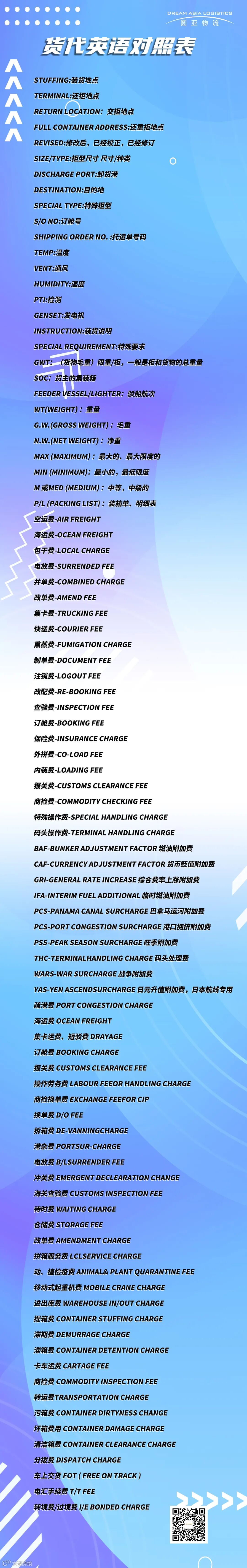 货代、外贸圈的伙伴们在日常工作中一定会遇到许多英文单词,为了能让大家更便利地运用,给大家整理了货代英语对照!