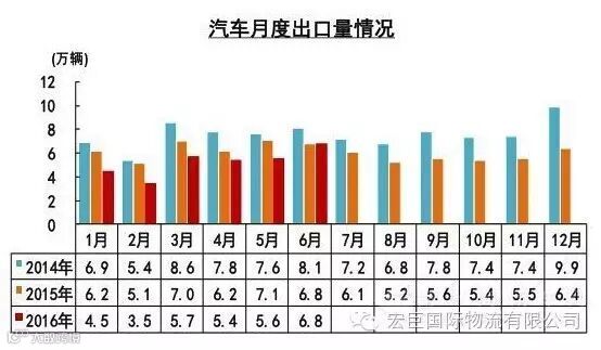 6月汽车企业出口为6.8万辆,比上月增长21.1%,出口量与上年同期持平。分车型看,商用车出口2.5万辆,比上月增长25.6%,比上年同期下降16.9%;乘用车本月出口4.3万辆,比上月增长 18.6%,比上年同期增长13.4%。