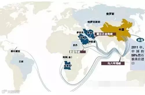 而于中国来说,它更有着有无法替代的重要性。在目前中国的原油进口中,从中东和非洲进口的比例就高达60%,这些石油只能通过印度洋和马六甲海峡运至中国,如果算上从其他地区经由印度洋运输的量,这个比例将会到达到80%,连接着印度洋和南海的马六甲海峡,实则是中国海上贸易的咽喉。