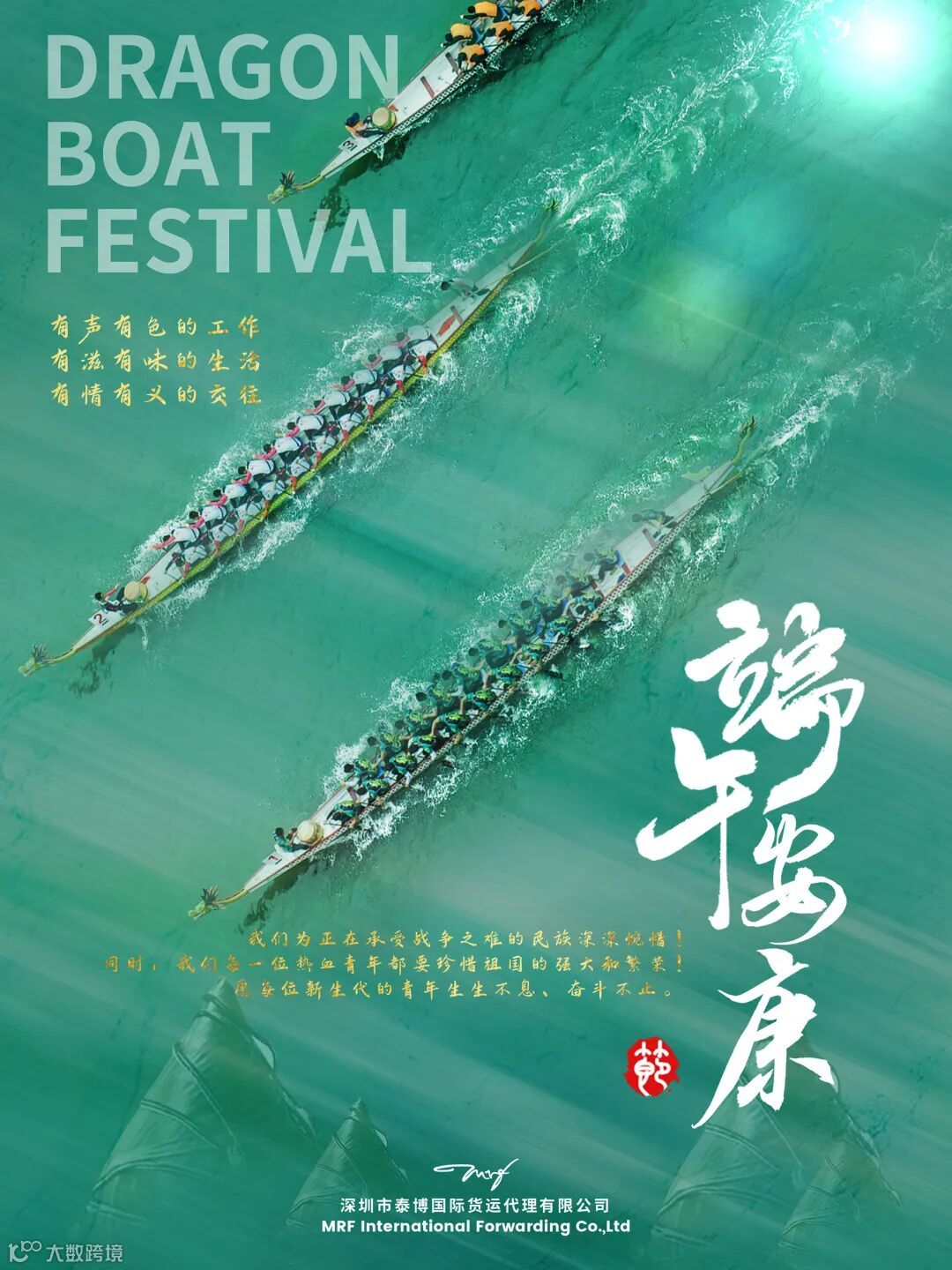 端午节也传承着一种歌唱民族和爱国诗章的文化气息,在风风雨雨的岁月洗涤中,如一道绚丽的彩虹,映照着具有悠久历史的文明古国。我们为正在承受战争之难的民族个感到深深的惋惜!同时,我们每一位热血青年都要珍惜祖国的强大和繁荣!愿每位新生代的青年生生不息,奋斗不止!
