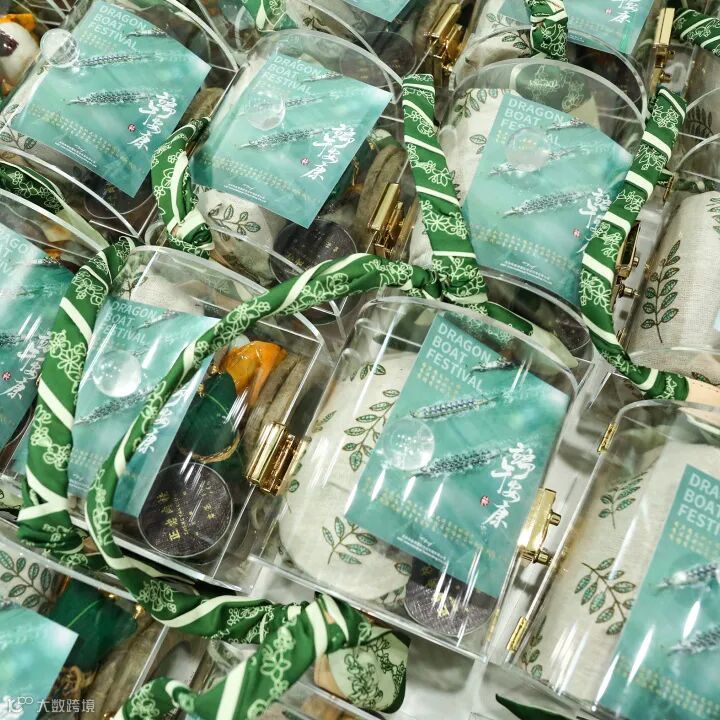 又逢端午,公司提前筹划,精心为全体员工准备了充满温情的端午福利。行政部同事们早早就布置好了活动场地,墨绿色、淡绿色、嫩绿色的装饰组合在一起别有一番风味,龙舟、艾叶,粽子等元素贴纸增添了一丝节日氛围。本次礼盒充分考虑了男女生不同的审美需求:男士是雅致的绿色长方形礼盒,大方而高级;女士的礼盒则是透明宝盒搭配丝巾手提袋,精致而优雅。礼盒内容更是富含美好寓意: 香香的粽子好兆头,甜甜的粽子好年头,香囊、艾叶、小罐茶、幸运蛋伴每一位小伙伴好运连连!