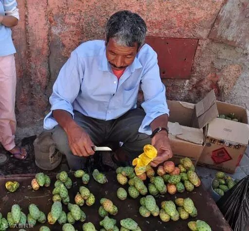 仙人掌结出的果实,样子虽然不那么美,但味道却不错,大约是摩洛哥最便宜的水果吧。其实,我们常吃的火龙果,也是一种仙人掌科植物的果实。