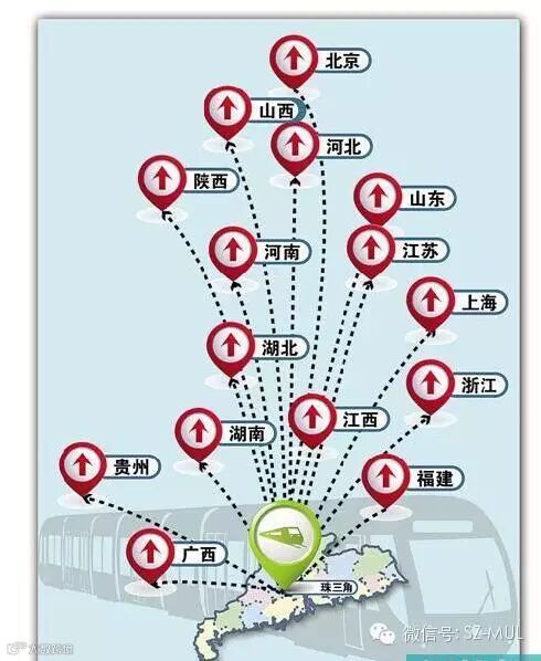 未来:厦深、南广、贵广、深茂、韶赣、梅汕形成以珠三角为中心的两小时工作生活圈