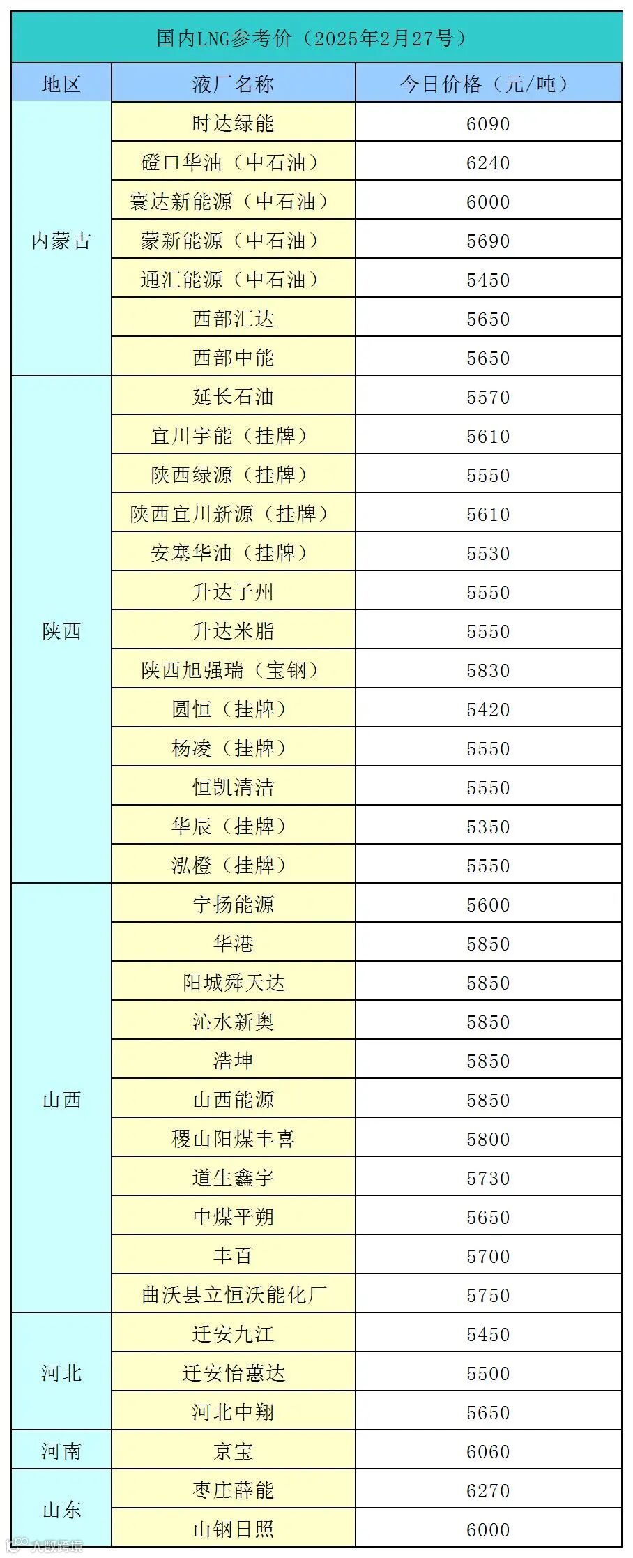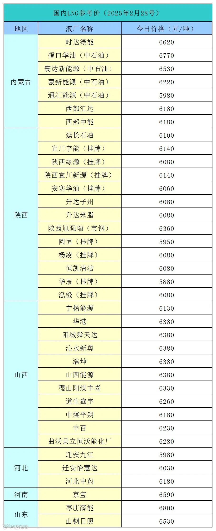 【2024.1.26-2025.2.28日】国内天然气参考价格