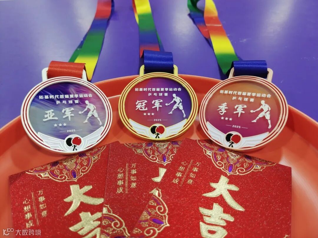 经过激烈的角逐,各项比赛的冠亚季军相继诞生,大家凭借出色的表现站上了领奖台,公司领导为获奖者颁发荣誉奖牌和奖金红包,并送上祝贺。最后大家合影留念,记录下这难忘的荣耀时刻。