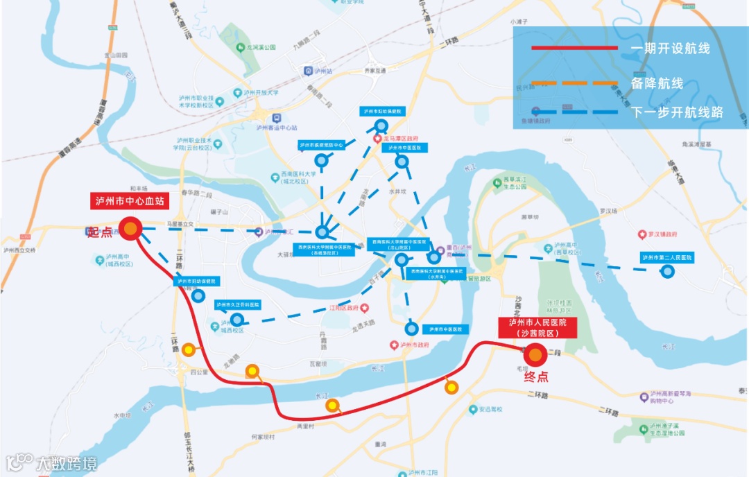 在泸州市中心血站、泸州市人民医院的大力支持下,泸州低空经济产业发展有限公司完成低空物流枢纽站及其配套设施建设。从9月28日开始,进行空载飞行测试,在顺利完成多次空载测试后,10月11日,成功完成无人机载物测试,一架六旋翼无人机将2公斤模拟血浆成功运抵泸州市人民医院(沙茜园区),全程飞行距离约13.1公里,仅用时17分钟。