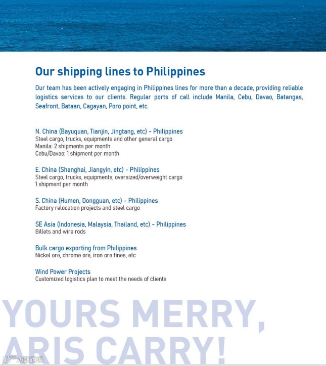 启航海运团队深耕菲律宾市场二十载,除主港马尼拉外,菲律宾航线还有每月班轮服务挂靠宿务CEBU、达沃DAVAO港口,以及八打雁BATANGAS,卡加延CAGAYAN 等不定期船挂靠,努力为客户提供菲律宾全境物流解决方案。