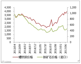7月钢材价格继续震荡上行,螺纹钢价格维持在5年以来最高水平,产量增长为1.84%,高炉开工率出现提升。同时,铁矿石价格在螺纹钢带动下出现反弹。钢铁产业保持良好的景气度。