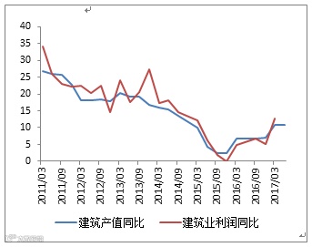 2017上半年建筑业总产值同比增长超过了10%,行业内上市公司利润增长超过16%;但从上市公司现金流情况看,因PPP周期长等原因而出现恶化的倾向。结合目前各项投资情况看,预计下半年,受制于固定资产投资下行压力和企业现金流平均,行业产值和利润增速将略有下滑,但如金融政策和环境平稳,总体上将依然保持弱势复苏的状况。