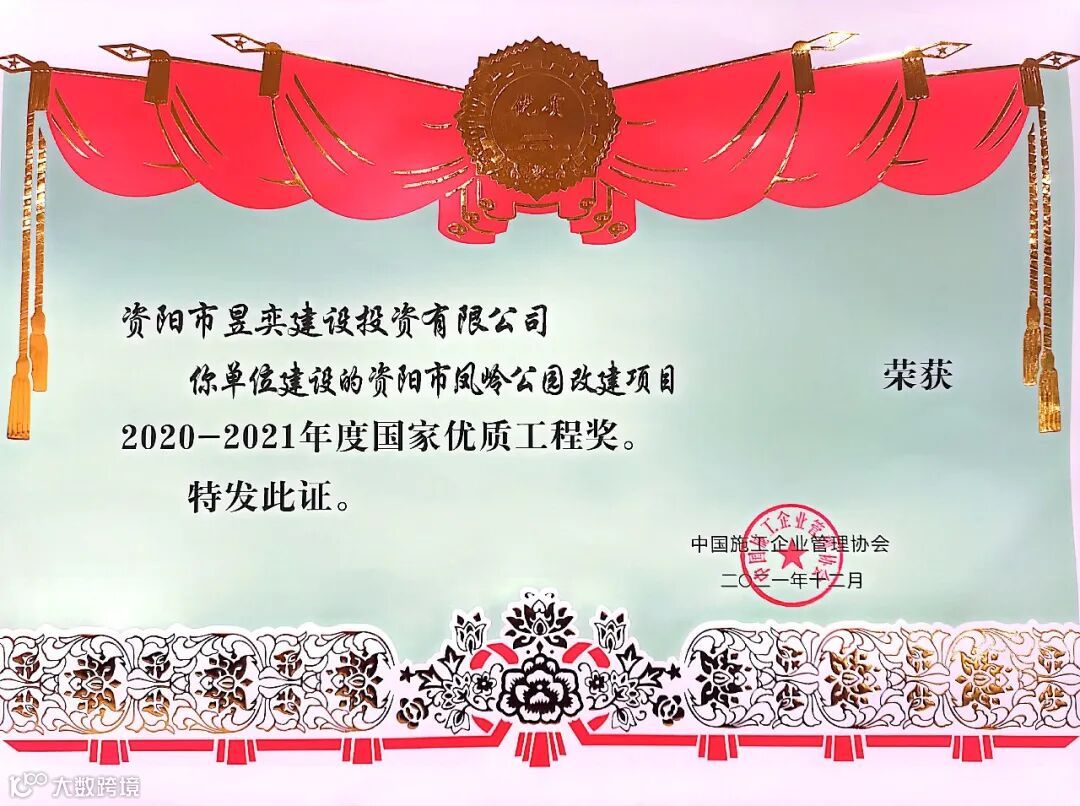 喜讯!资阳市凤岭公园改建项目荣获“国家优质工程奖”