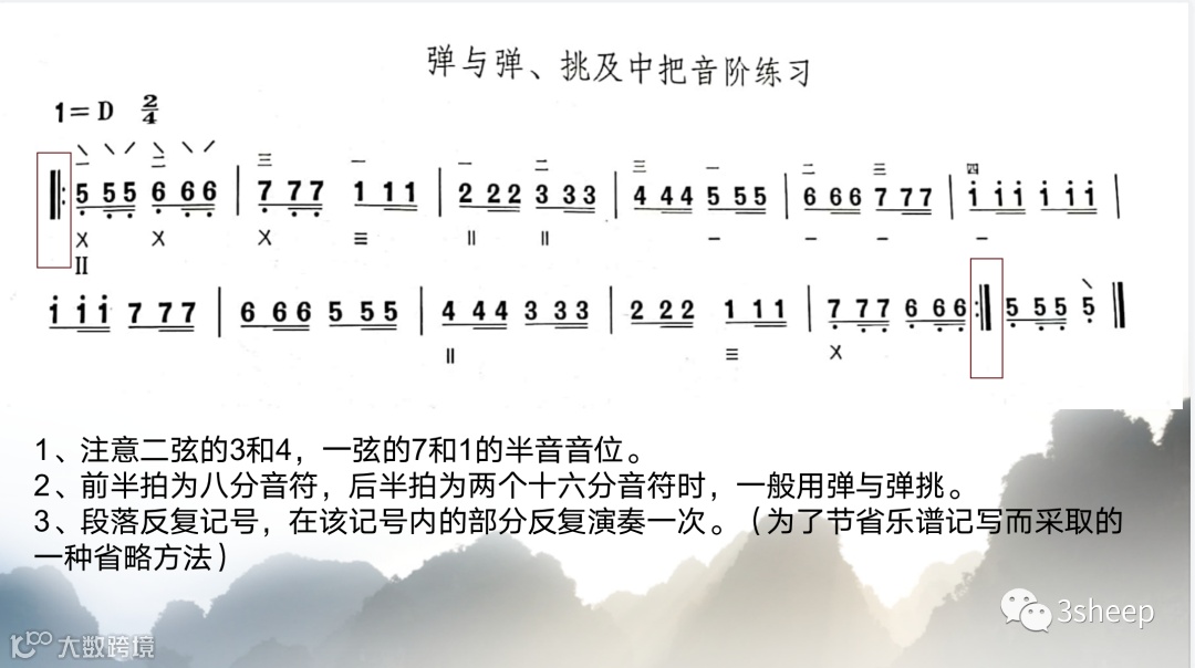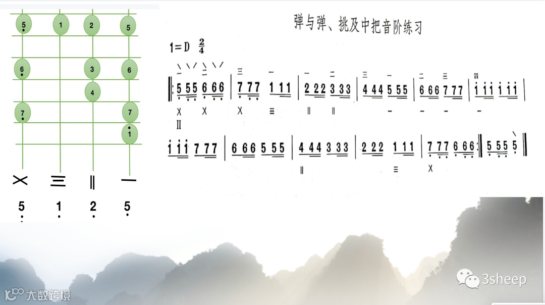 大家好,欢迎来到3sheep琵琶课堂。之前我们学到了前八后十六和前十六后八的节奏型,这节课我们学一首关于前八后十六在中把位的练习曲。