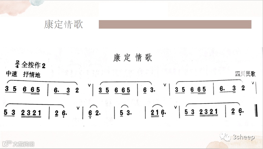 今天这节课我们将进行四川民歌《康定情歌》的乐曲学习。