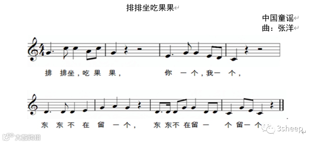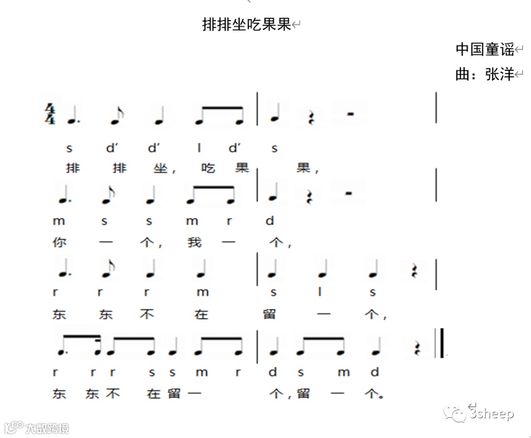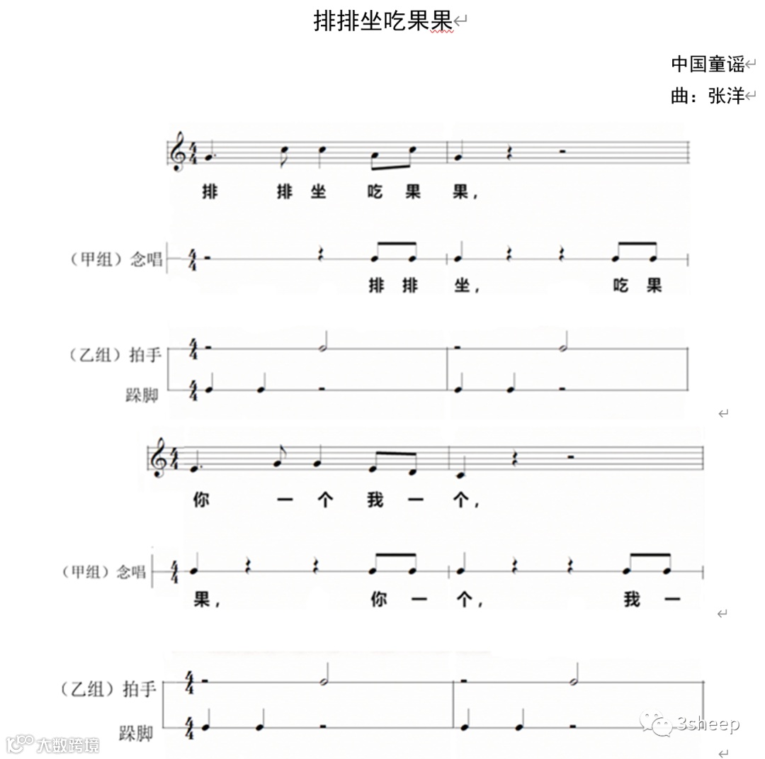 谱例3-7:歌曲《排排坐吃果果》总谱
