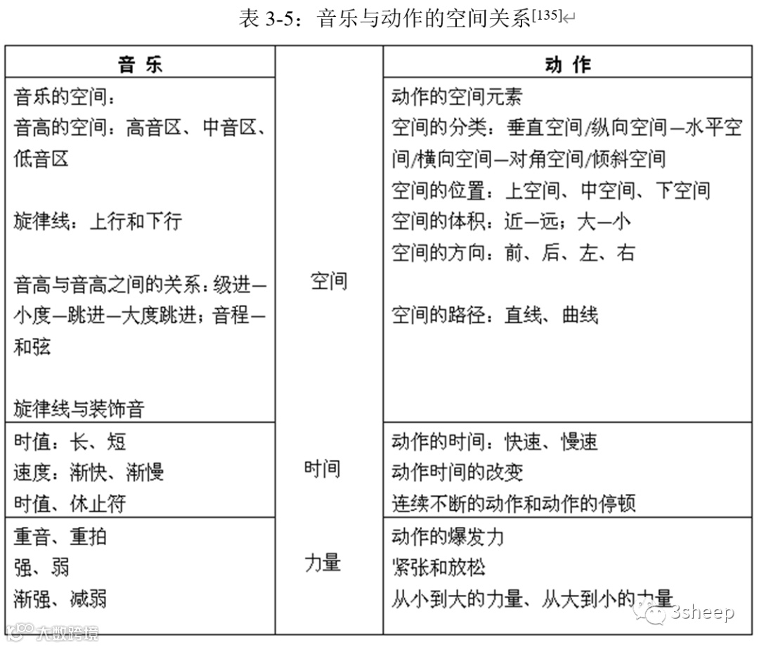 陈蓉对音乐与动作的空间关系做了更为详细的整理,如表3-5所示。
