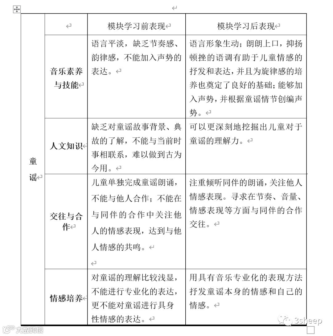 经过童谣模块的学习,儿童在音乐素养与技能、人文知识、交往与合作、情感培养等方面都能够取得了一定程度的提高,主要表现在以下几个方面(见表3-2)。