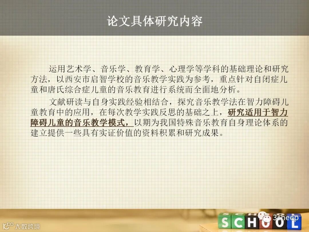 硕士论文答辩PPT——音乐教学法在智力障碍儿童教育中的应用 3sheep