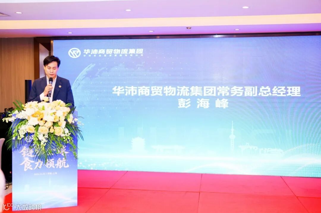 随后,华沛农业发展集团董事长彭浩发表致辞,他谈到,随着国内消费升级和全球供应链重构,行业正迎来新的机遇。过去一年,华沛积极布局南美市场,10月底在巴西圣保罗成立第二家海外分公司,11月在上海江阳市场开设的华沛牧云高端谷饲牛肉门店,这是华沛深耕高端肉类领域的重要里程碑,未来,华沛将借助武汉阳逻港江海联运的优势,依托上海畅联八方的交通网络和强大的市场辐射能力,构建起覆盖全国、连接全球的全链条供应链服务体系,通过整合物流资源,降低物流成本,提升服务效率,为行业客户提供更加优质、高效、便捷的供应链服务,期待与各位合作伙伴携手共创更加美好的未来。